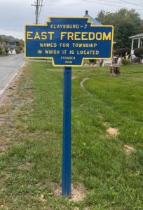 KMT has been advised by East Freedom Township,l in Blair County,of a marker for the town of East Freedom, on old U.S. 220. It has Claysburg on the top as the next town. Thus it would have been at the north end of the village.