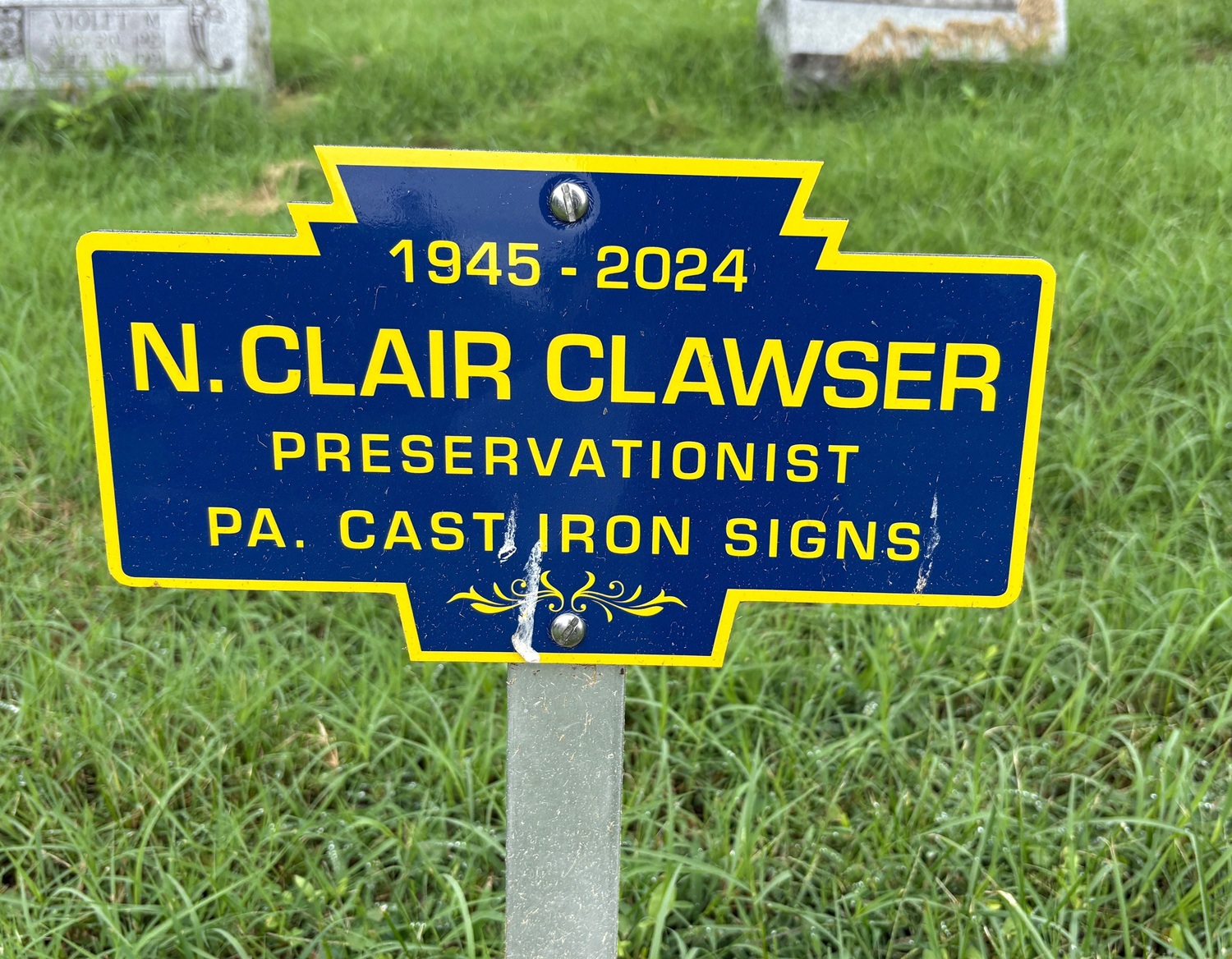 - STATUS: This memorial marker to Mr. Clawser is most appropriate, as he was one of, if not THE, first person to begin to document the Keystone Markers that still existed. Beginning in 1970, he began publishing small booklets about the signs, and published updated such books for many years. t
