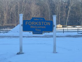 - STATUS: Refinished by KMT in cooperation with township. This marker remains in place, and town has added a "replica" marker as an additional welcoming sign.