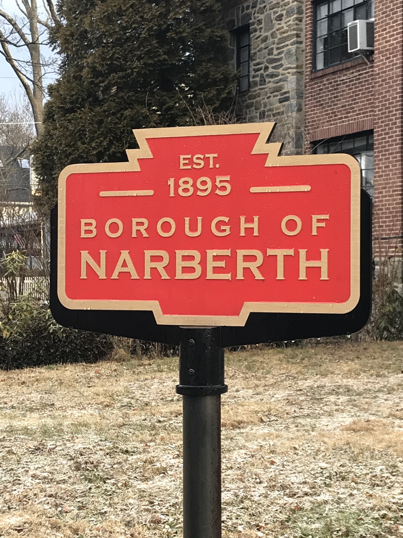 - STATUS: Painted in the red and gold colors associated with the Pennsylvania Railroad, four of these signs were made for and installed by the Borough about 2010. Narberth is a town on the "Main Line" of the railroad west from Philadelphia.