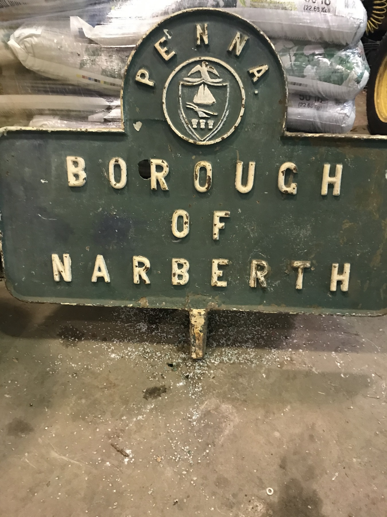 Earlier version of a cast iron sign at the Boro. Jan 2020 photo by E. Harman